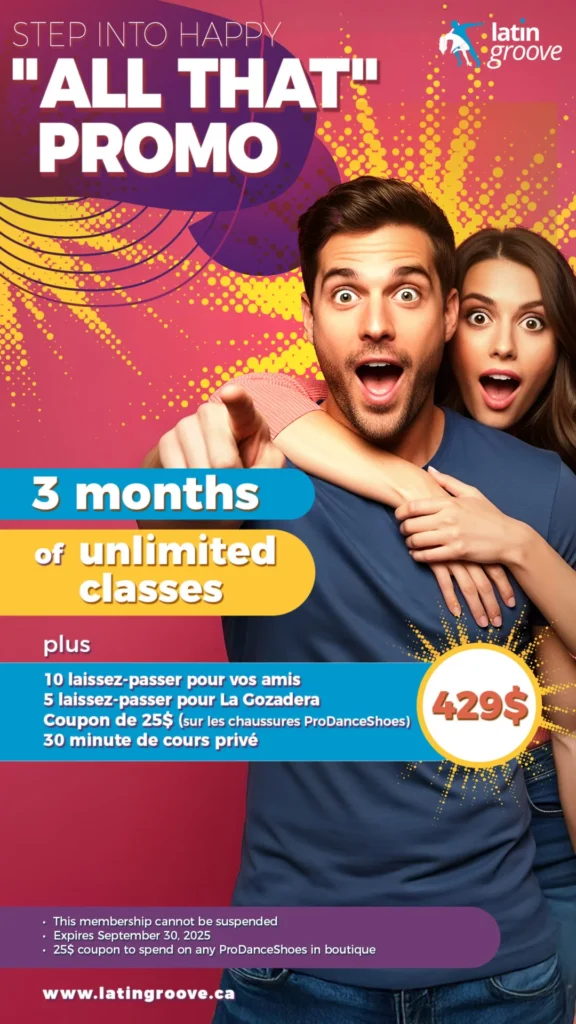 For only $429, you’ll enjoy 3 full months of unlimited dance classes, giving you access to all your favorite Latin styles — from Salsa and Bachata to Zumba and more. But that’s not all: we’re adding 10 buddy passes so you can share the fun, 5 La Gozadera party passes for our legendary Friday nights, and a 30-minute private lesson to take your dancing to the next level.