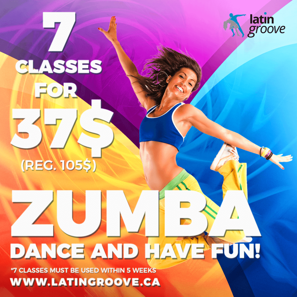 Keep it moving with our Zumba/Fitness special offer and get 7 classes for 37$ only. (must be used within 5 weeks of the 1st class taken.) (105$ reg.)