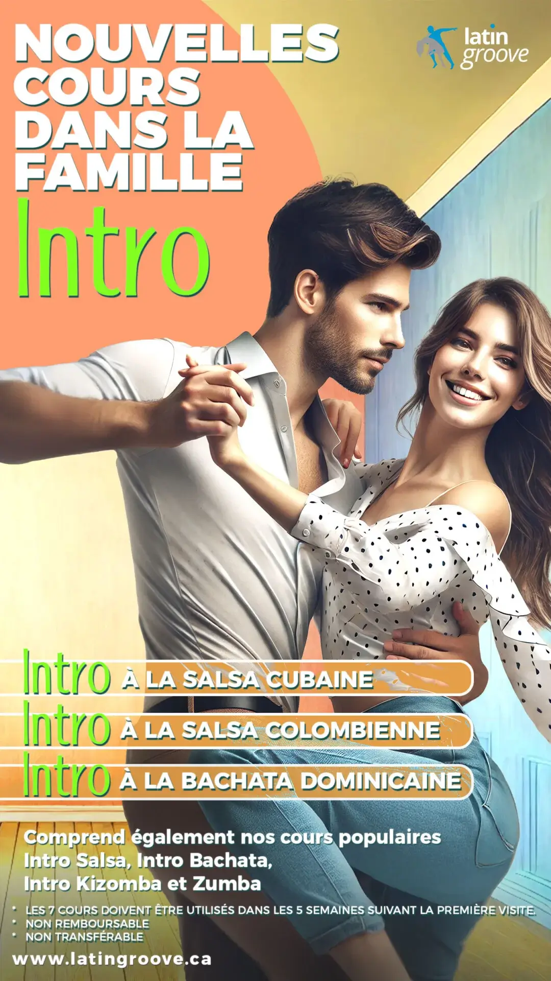 Rejoignez la meilleure école de danse de Montréal pour des cours de Salsa, Bachata, Kizomba, fitness, et plus encore. Profitez d’une ambiance conviviale pour progresser rapidement.